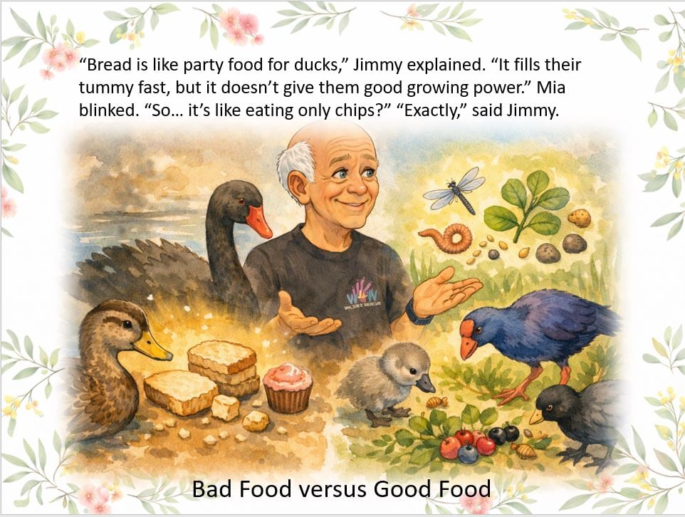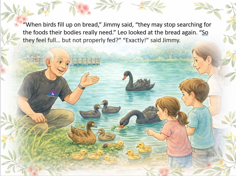 The water birds at the lakes all love bread. Surely it's good for them... right? Wrong! Find out what really happens when birds eat bread as we follow little Mia and her brother Leo on an educational adventure with Jimmy.